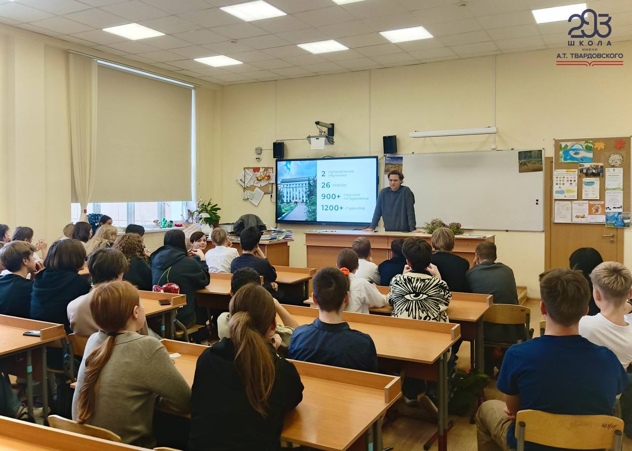 В рамках знакомства с будущими профессиями для ребят из 8 «Л», 9 «Л» и 10 «К» классов выступил студент второго курса Биологического факультета Московского государственного университета имени М. В. Ломоносова. Он поделился своим опытом поступления, рассказал о процессе обучения и специальностях, которые можно освоить. Особое внимание он уделил Звенигородской биостанции, где студенты проходят практику, описав жизнь студентов и возможности, которые открывает вуз.